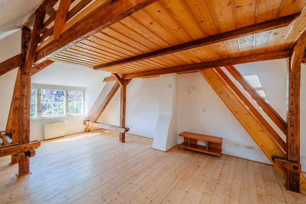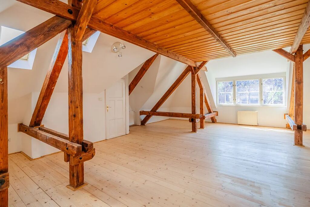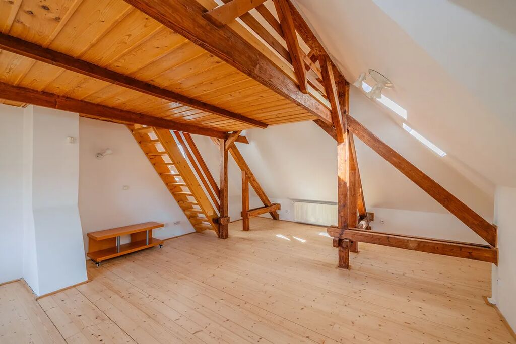 Zde se nachází další koupelna a vstup do podkrovního prostoru, který zaujme původními dřevěnými trámy a příjemnou atmosférou. Z podkroví vedou schody do otevřené galerie, která může sloužit jako ateliér, pracovna, knihovna nebo relaxační zóna.