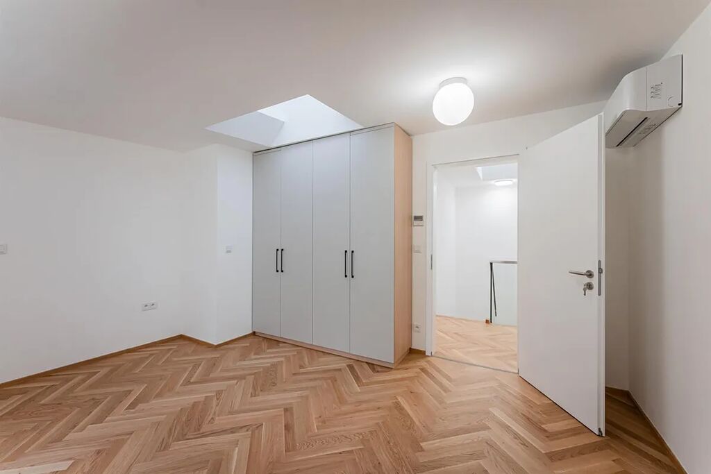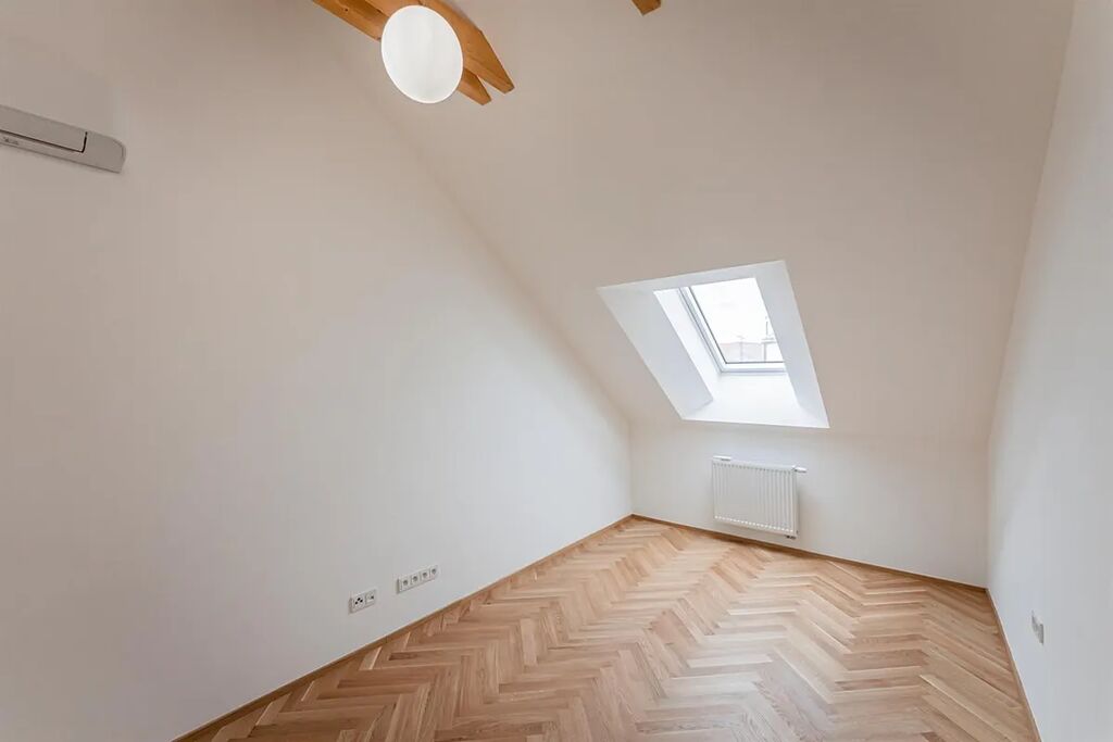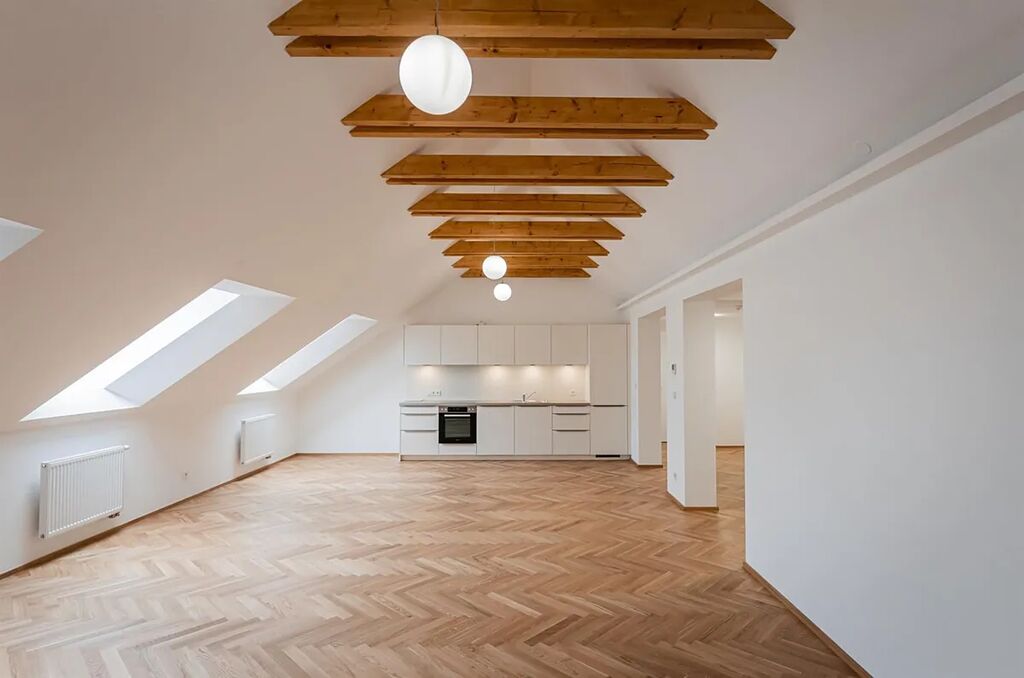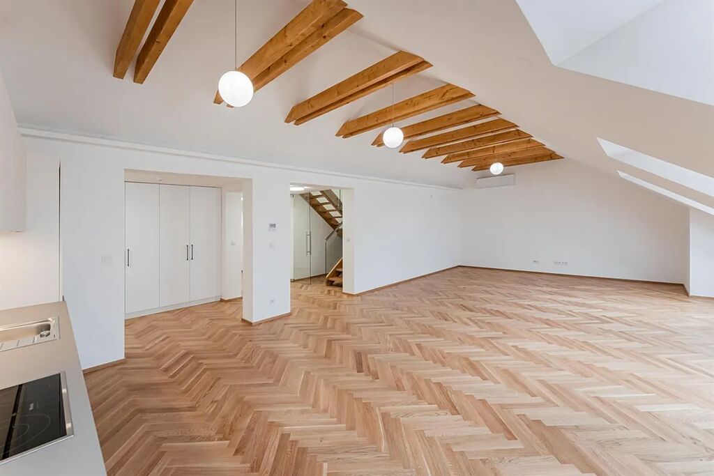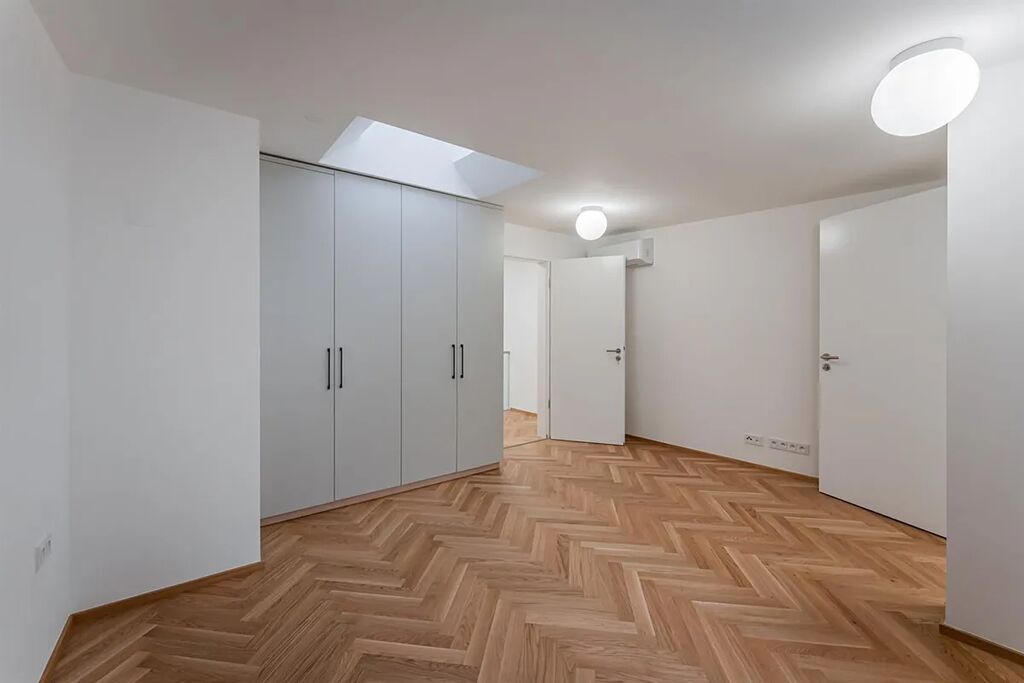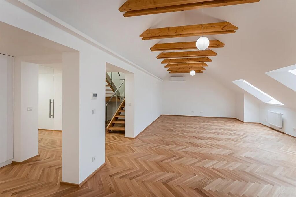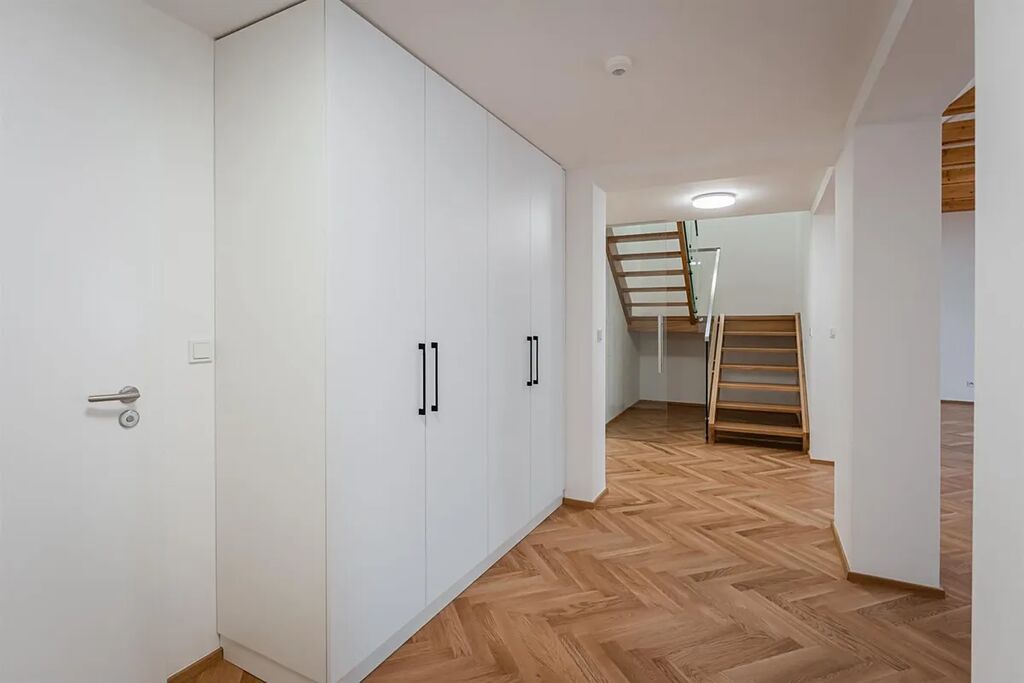 Zrekonstruovaný duplex 4+kk ( 3 ložnice, 3 koupelny), o celkové obytné ploše 148,97 m2, je situován v 5. a 6. patře právě rekonstruovaného rezidenčního domu s novým výtahem, který se nachází v centru Prahy, v ulici Růžová.