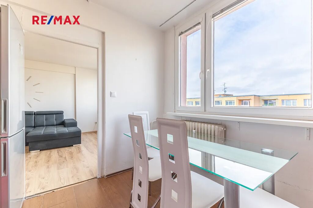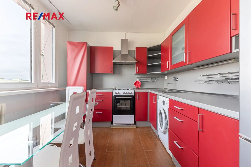 Nabízíme světlý a prostorný byt 3+1 o podlahové ploše 88,7 m², který se nachází v 9. patře kompletně revitalizovaného panelového domu. Byt je velmi dobře řešený, má 2 neprůchozí pokoje, prostorný obývací pokoj, kuchyňský kout a lodžii o výměře 3 m² přístupnou z jedním z pokojů. K bytu náleží také 2 sklepní kóje (celkem 4 m²). Dům prošel kompletní revitalizací - zateplení, plastová okna, společné prostory včetně kamerového systému a výtahu.