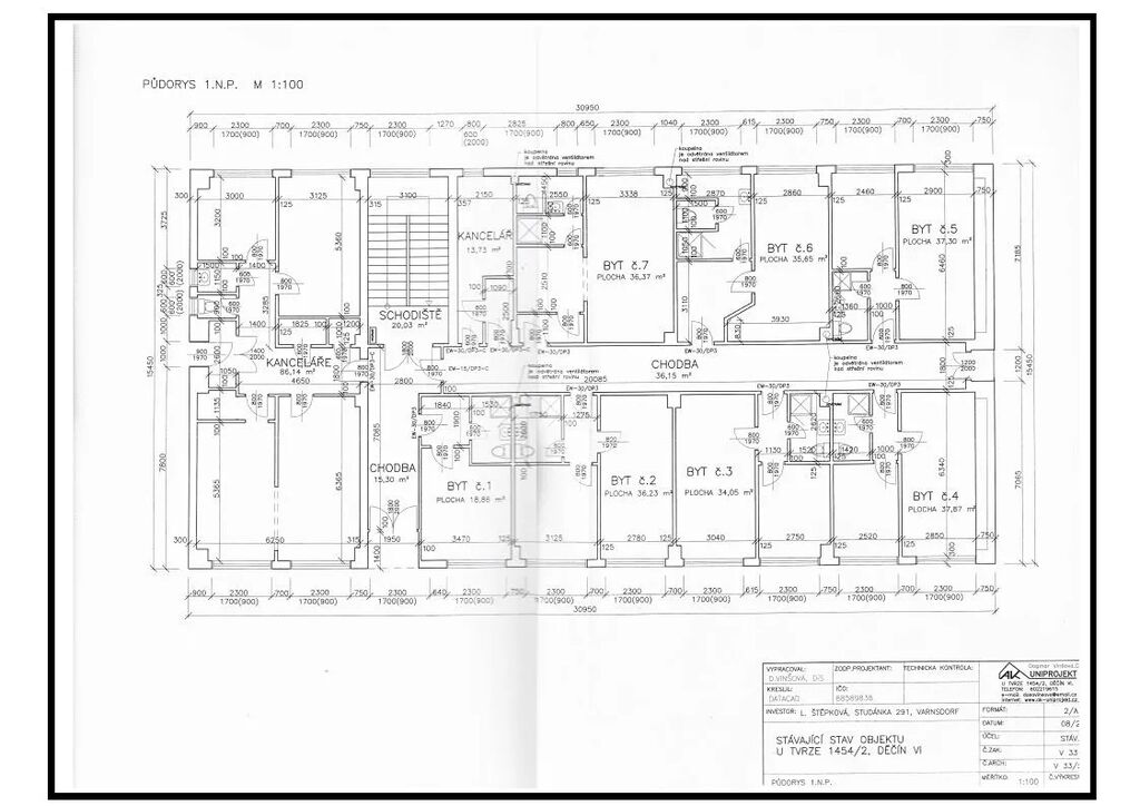 I. PP kancelářské a skladové prostory, celkem 7 místností