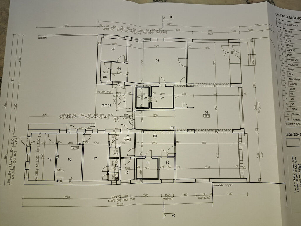 Plyn je do objektu zaveden, nyní bez přípojky. Topení v objektu zavedeno plynové. Osvětlení. Celková plocha asi 420 m², zastavěná plocha 320 m², dvůr asi 80 m², rampa 20 m² asi zhruba. K objektu vede příjezdová zpevněná komunikace, zepředu i zezadu. Objekt je členěný, má velké i malé místnosti, zázemí, WC a sociální zařízení. Objekt k pronájmu ihned. Lze pronajmout i jen část objektu, vše bude řešeno domluvou.