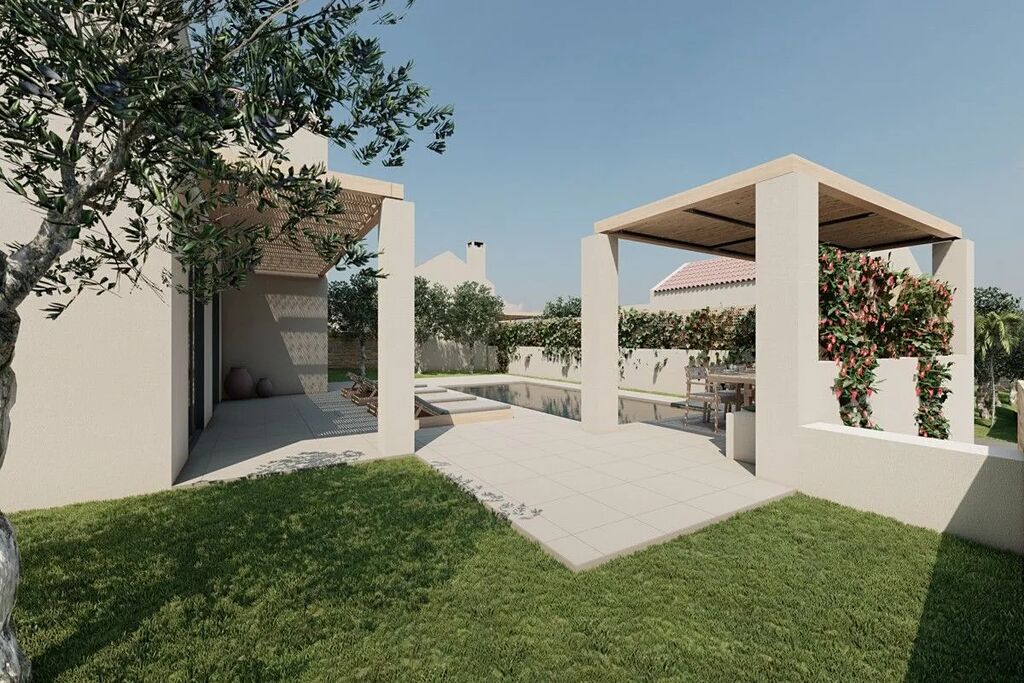 Nabízíme k prodeji novostavbu mezonetového domu v Apokoronas, Chania na Krétě, který se nachází ve vesnici Vamos. Má celkovou obytnou plochu 97 m² a nachází se na soukromém pozemku o rozloze 408 m². Je rozdělen na 2 podlaží a skládá se ze 2 ložnic a 2 koupelen. V přízemí se nachází kuchyň s otevřeným prostorem, obývací pokoj a jedna koupelna. Dále má velké balkonové dveře, které poskytují přímý přístup do prostoru zastřešeného pergolou a k bazénu.