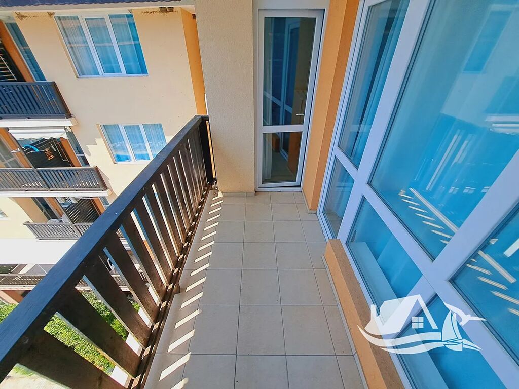 Tento světlý apartmán 2+kk o celkové ploše 64,38 m² se nachází v pátém podlaží moderního komplexu Chateau Aheloy 3, pouhých 520 metrů od pláže. Jižní orientace propouští do interiéru dostatek světla a z balkonu můžete sledovat mořský horizont – místo jako stvořené pro ranní kávu, večerní odpočinek nebo letní večeře pod širým nebem.