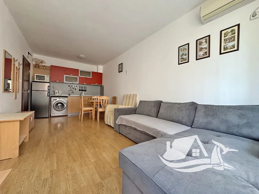 Tento apartmán o dispozici 2+kk a celkové ploše 49 m² se nachází v 1. patře moderního rezidenčního komplexu Sunny Day 6 na Slunečném pobřeží. Nabízí světlý obývací pokoj s kuchyňským koutem, ložnici, koupelnu s toaletou a balkon s výhledem na okolní krajinu. Interiér působí čistě, prakticky a vzdušně – ideální jak pro osobní rekreaci, tak i jako investice s možností stabilního výnosu z pronájmu.