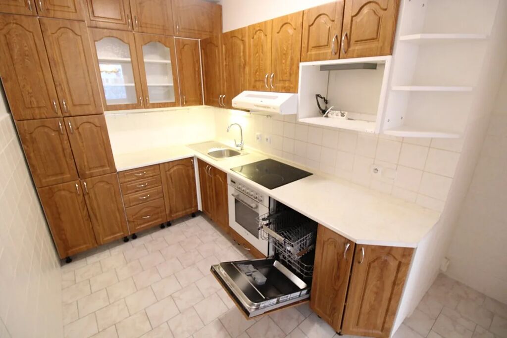 Kuchyňská linka je zánovní, vybavená vestavnými spotřebiči včetně myčky nádobí. Dále jsou zde dvě samostatné ložnice, zděné jádro, koupelna se sprchovým koutem a oddělené WC.