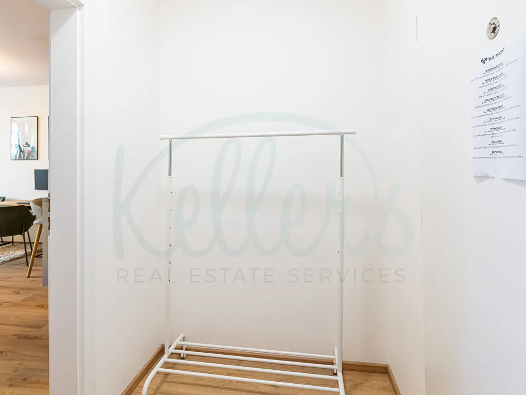 V ložnici je umístěna šatní skříň, v obývacím pokoji TV komoda, televize a rozkládací pohovka (možno ponechat po dohodě). Postel, pračka, pracovní stůl a židle nejsou součástí pronájmu. K bytu patří venkovní vyhrazené parkovací stání před domem, které je již zahrnuto v ceně nájmu. V přízemním lobby domu je k dispozici samoobslužná kavárna – příjemný a dnes stále ještě poměrně unikátní benefit, který zpříjemňuje každodenní bydlení.
