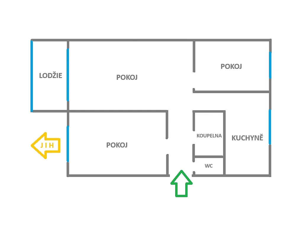Byt je po dřívější rekonstrukci a je dobře dispozičně řešený - pokoje jsou samostatně přístupné z předsíně stejně jako kuchyně. Koupelna a záchod jsou odděleny. V koupelně je vana. Okna z kuchyně a jednoho z pokojů jsou směrem k severu do zeleného vnitrobloku, lodžie v obývacím pokoji a okno dalšího pokoje jsou na jižní stranu. Lodžie je nedávno instalována a je zasklená, což umožňuje její využití v každé roční době.