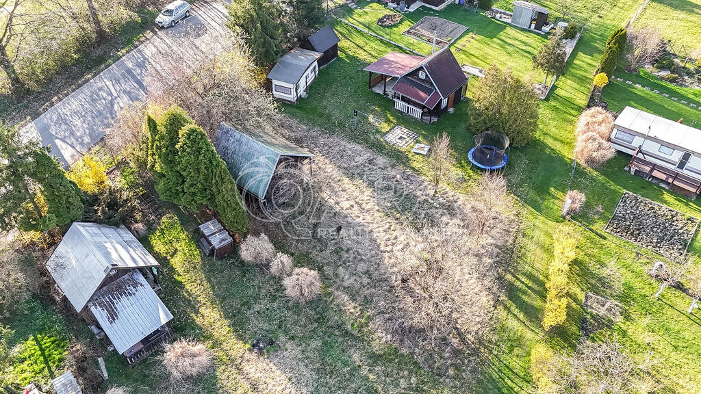 Pozemek se nachází v zahrádkářské osadě, kde máte soukromí a klid, přičemž do města se autem dostanete za pouhých 5 minut. Navíc, procházky můžete vyrazit rovnou do okolní přírody, která je přímo za chatkou.