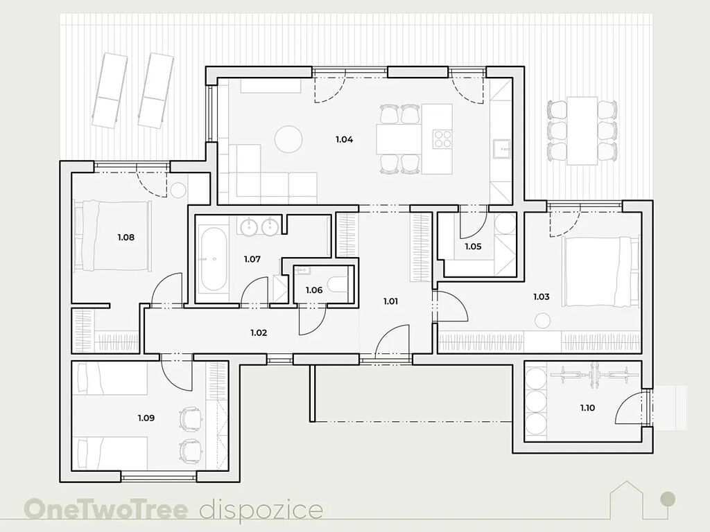 - Obytná část: 101,2 m², užitná plocha včetně terasy 144,81 m²