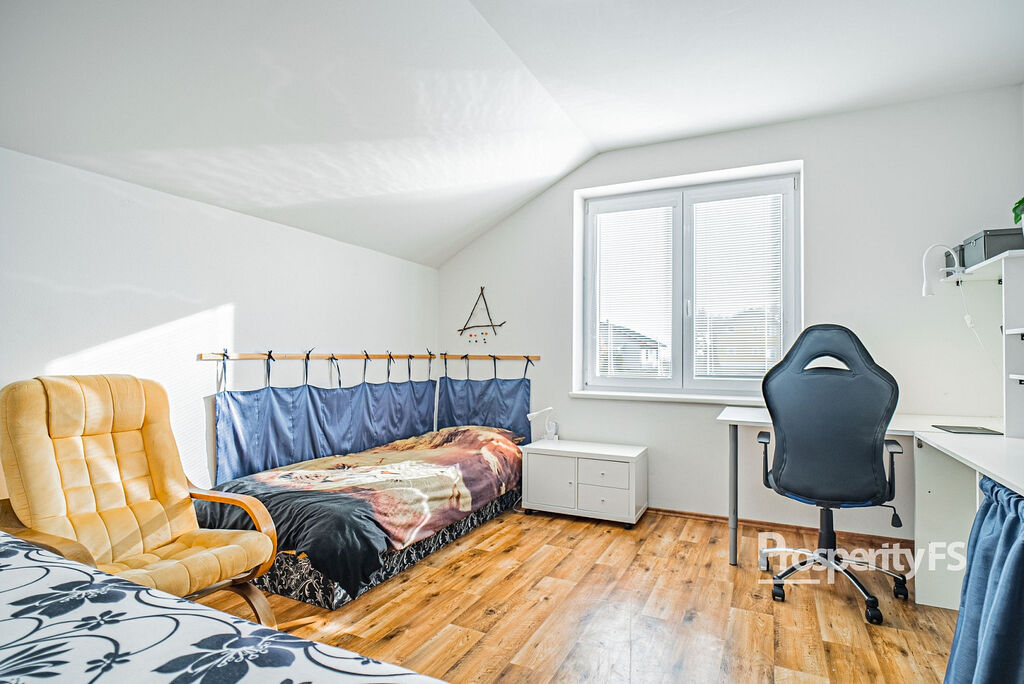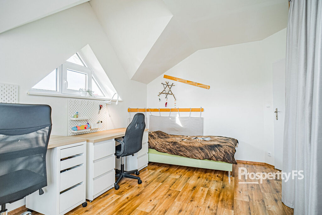 Dispozičně je dům řešen velmi prakticky. V přízemí najdete prostornou vstupní chodbu, světlý obývací pokoj propojený s kuchyní, velkou ložnici, koupelnu se sprchovým koutem a toaletou a také praktický kumbál na uskladnění věcí. Celé přízemí působí vzdušně a moderně. V patře se nacházejí tři samostatné, neprůchozí pokoje s krásným výhledem do zeleně, koupelna s vanou a toaletou a vstup na půdu. V obou podlažích je podlahové vytápění, které zajišťuje příjemnou teplotu po celý rok. Dům má plastová okna a je kompletně zateplen (včetně stropu).