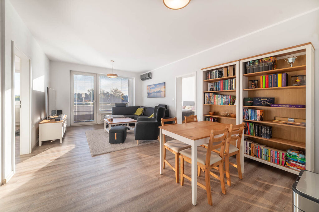 Majitelé tohoto bytu dnes staví svůj vysněný dům. Aby se stěhovali jen jednou, mají jednu jasnou podmínku: po prodeji potřebují v bytě zůstat ještě do konce roku 2026 formou nájmu. Samozřejmě za běžné tržní nájemné, s možností domluvit započtení nájemného do kupní ceny nebo další variace, které mohou být pro kupujícího výhodné.