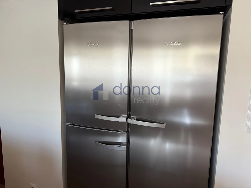 Luxusní kuchyně je plně vybavena špičkovými spotřebiči Miele, včetně americké lednice s vinotékou a mrazákem.