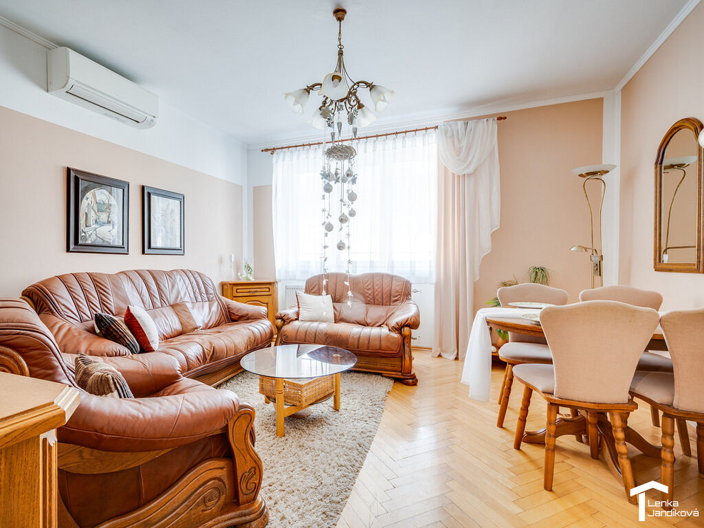 Pokud hledáte komfortní bydlení v centru města, tak právě vám je určený pronájem tohoto bytu 2+1. Kompletně vybavená bytová jednotka s výměrou 63m² je umístěná v 5. NP zděného domu ve Sladkovského ulici. Byt má samostatné vstupy do obývacího pokoje a ložnice, na chodbě je dostatečné množství úložných prostorů a kuchyňská linka je osazena spotřebiči. Koupelna s vanou je spojená s WC a je zde umístěná pračka. V obývacím pokoji je k dispozici klimatizační jednotka. V domě se nachází výtah. Byt je volný od 5.1.2026.