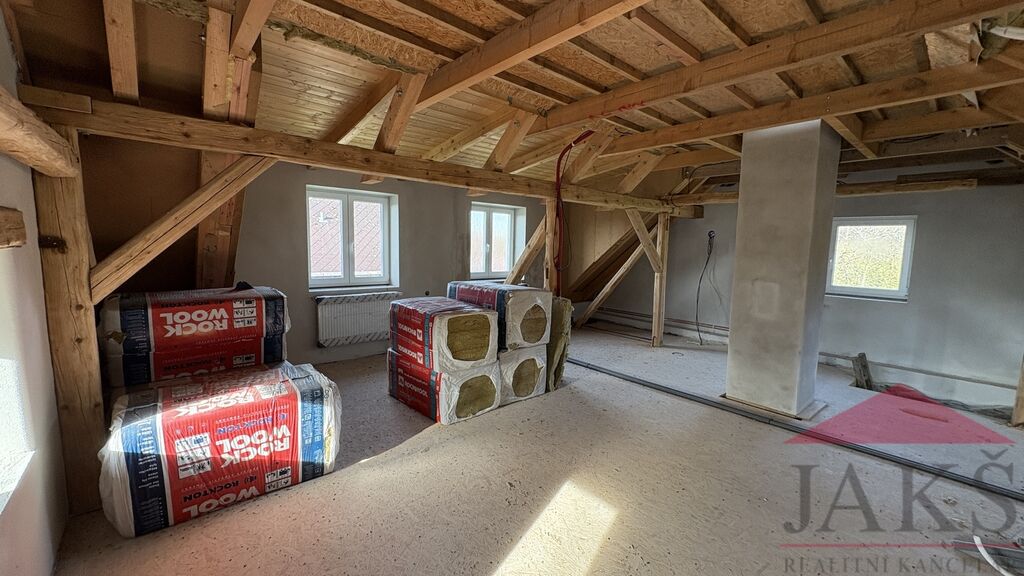 Započatá zevrubná rekonstrukce, přičemž je dokončený „obal“ a „střeva“ domu, jmenovitě: nová moderní dispozice 5+kk, střecha vč. klempířských prvků a částečně výměna krovů, vyvložkovaný nový komín, plastová okna 3-skla, strop vč. přiznaných pohledových trámů, podlahové topení v 1.NP a radiátory v podkroví vč. rozvodů v mědi, elektroinstalace vč. jističů, rozvody vody a odpadu v plastu, nová jímka, srovnané stěny vč. omítek, štuku a bílé výmalby, francouzské okno na budoucí terasu, srovnaná fasáda; k dokončení jsou pohledové prvky (podlahové krytiny; podhledy vč. izolace, která je v domě; příčky v podkroví, vnitřní dveře, sanita v koupelnách, osvětlení, kuch. linka...), schodiště, zdroj topení a terénní úpravy.