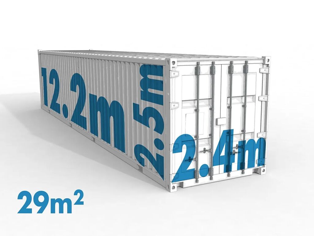 Velikost 29 m² (12,5 m x 2,5 m x 2,4 m).