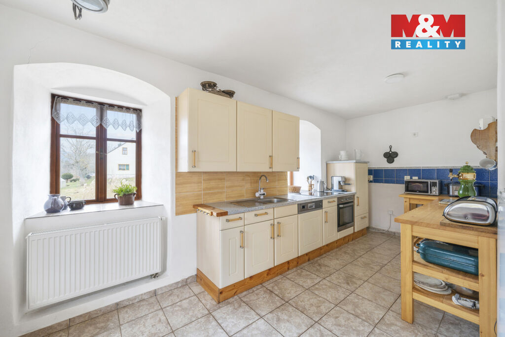 Toužíte po klidném bydlení s možností podnikání? Nabízíme k prodeji nádhernou zemědělskou usedlost v obci Vernéřovice. Tento samostatně stojící rodinný dům na polosamotě se pyšní užitnou plochou 280 m² a rozlehlým pozemkem o výměře 1499 m². Dům je ve velmi dobrém stavu a nabízí 6 prostorných místností, 1 nadzemní podlaží a velký sklep s klenbou. Konstrukce je smíšená s pískovcovými základy. Nemovitost je vybavena moderními prvky jako podlahové topení a tepelné čerpadlo. Kromě toho zde najdete i tradiční krbová kamna. Vlastní studna a dostatek soukromí dělají z této nemovitosti ideální místo pro bydlení i podnikání v oblasti ubytování. Nechte se okouzlit tímto jedinečným místem!