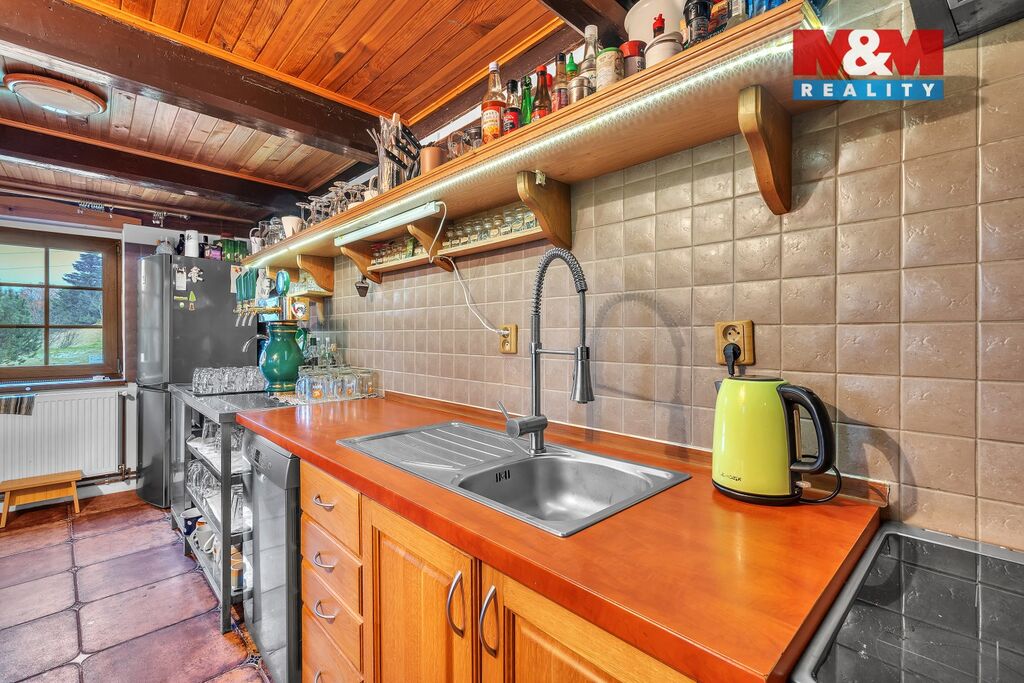 Popis: Vážení klienti, nabízíme k prodeji typickou " krkonošskou boudu na samotě u lesa", s krásným výhledem na hory. V létě i zimě je odtud možno vystoupit na naši nejvyšší horu Sněžku. 200 -300m od nemovitosti jsou restaurace, pošta a lyžařský areál. Zařízený penzion nabízí stálou klientelu s celoročním provozem. Rozsáhlé rekonstrukce objektu probíhali v průběhu několika posledních let, podlahy, dřevěné prvky, zajišťující původní ráz nemovitosti. Stavba je tedy z částí roubená a část zděná dvoupodlažní, s obytným podkrovím. K dispozici celkem 20 místností, 9 pokojů o celkové kapacitě 32 míst. V penzionu restaurace (formou bufetu), bar. Společenská místnost, k dispozici TV. Každý pokoj má vlastní sociální zařízení a bojler. Prodej chalupy s veškerým vnitřním vybavením. Vytápění objektu je zajištěno ústředním topením, elektrokotel (možno topit i dřevem), kachlová kamna napojena do topného systému výhodou. Zimní sezóna zde začíná o 14 dní dříve než v jiných částech Krkonoš.