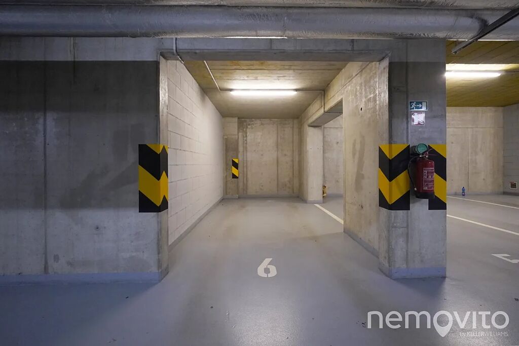 K bytu náleží parkovací stání v kryté garáži s velmi pohodlným a širokým vjezdem a také praktická sklepní kóje.