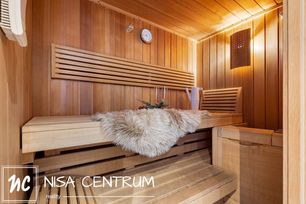 Jednotka je v perfektním stavu, připravena k okamžitému nastěhování, je zde nádherný vzdušný obývací pokoj s kuchyňským koutem, jehož dominantou jsou krbová kamna. Byt má tři ložnice, pracovnu, čtyři koupelny, když v jedné je sauna a velká vana pro dvě osoby s masážní funkcí. V dalším patře jsou pak dva samostatné pokoje, které mohou složit jako velkoryse řešené šatny. Obývací pokoj má výhled na jižní stranu a je tak zajištěn dostatek denního světla po celý den.