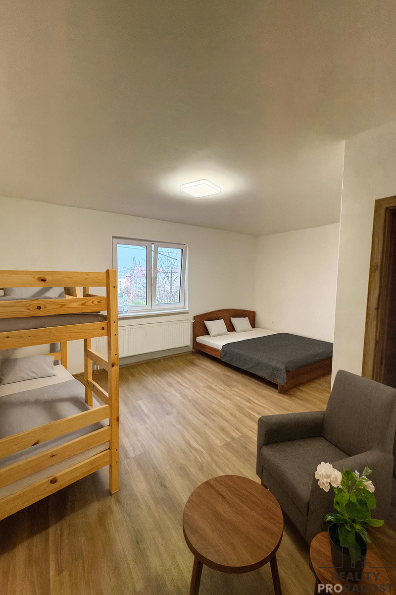 Nabízíme k prodeji novostavbu z r. 2024 v obci Zaječí, v malebné vinařské obci. Tato nemovitost skýtá ideální zázemí jak pro turisty, tak pro milovníky vína, anebo pro rodinné bydlení s podnikáním. Nemovitost poskytuje dostatek prostoru pro komfortní ubytování až pro 12 osob. Zastavěná plocha domu je 130 m2 + patro s apartmány + vinný sklep + zahrada. Samostatný přístup k úplně novým třem apartmánům, třem koupelnám a obývacímu pokoji 19m2 v patře přímo vybízí k podnikání s pronájmem, ale klidně se nabízí možnost pohodlného rodinného bydlení, poněvadž i v přízemí lze mít kuchyň s obývacím pokojem. Rozměry pokojů v patře: . 1. pokoj 16 m2, 2. pokoj 17 m2 a 3. pokoj 20 m2. Přístup do patra poskytuje praktické a nenarušující soukromí pro obyvatele domu.