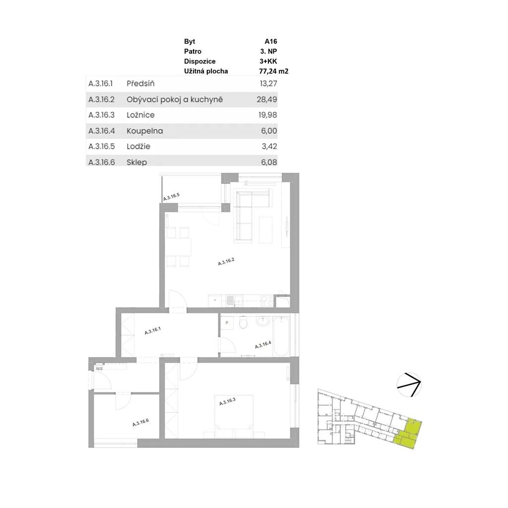 Představuji novostavbu bytu 2+KK o celkové výměře 74 m2 s lodžií, v Plzni na Doubravce, ulice Pilařská.