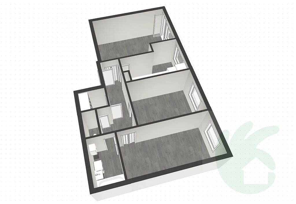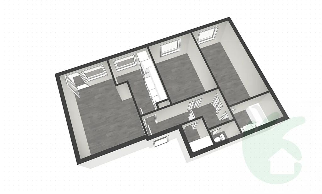 Byt je tvořen chodbou s dlažbou a svítidlem odkud je vstup do koupelny s vanou umyvadlem a pračkou, samostatnou toaletou a do dvou neprůchozích ložnic. Další dveře Vás zavedou do kuchyně s vestavnými spotřebiči (lednice, myčka, plynový vařič digestoř, vestavná trouba a mikrovlnka). Dále pokračujeme do obývací místnosti s vinylovou podlahou a svítidlem, z obývacího pokoje vstoupíte na prostorný zasklený balkón.