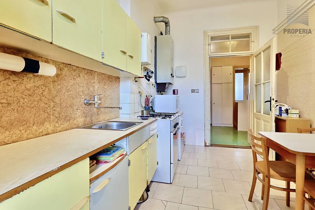Parametry pokojů: kuchyně 12,21 m2, pokoj do dvora 23 m2 a dva pokoje do ulice 27,5m2 a 26, 6 m2. Samostatná koupelna 3,36 m2, WC 0, 87 m2, předsíň 16 m2, komora 4 m2, spíž 1,15 m2 a balkón do vnitrobloku 3 m2.