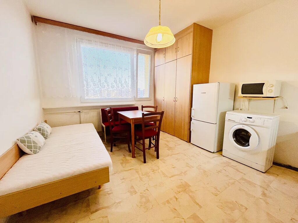 Nabízíme částečně vybavený byt 1+1 v Plzni na Lochotíně. Byt tvoří menší předsíň s botníkem, koupelna s toaletou, kuchyň (pračka, lednice s mrazákem, mikrovlnná trouba, plynový sporák s elektrickou troubou) a obytná místnost, kterou je možné předat bez nábytku. Příslušenstvím bytu je užívání lodžie na mezipatře a sklep. Pro zájemce o dlouhodobý pronájem.
