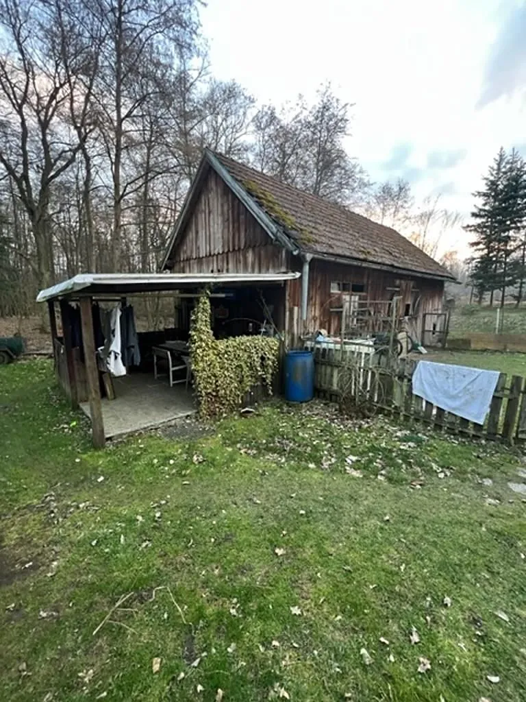 Na pozemku stodola 60m2 a na ni navazující pergola s posezením 20m2, u pergoly nadzemní bazén.