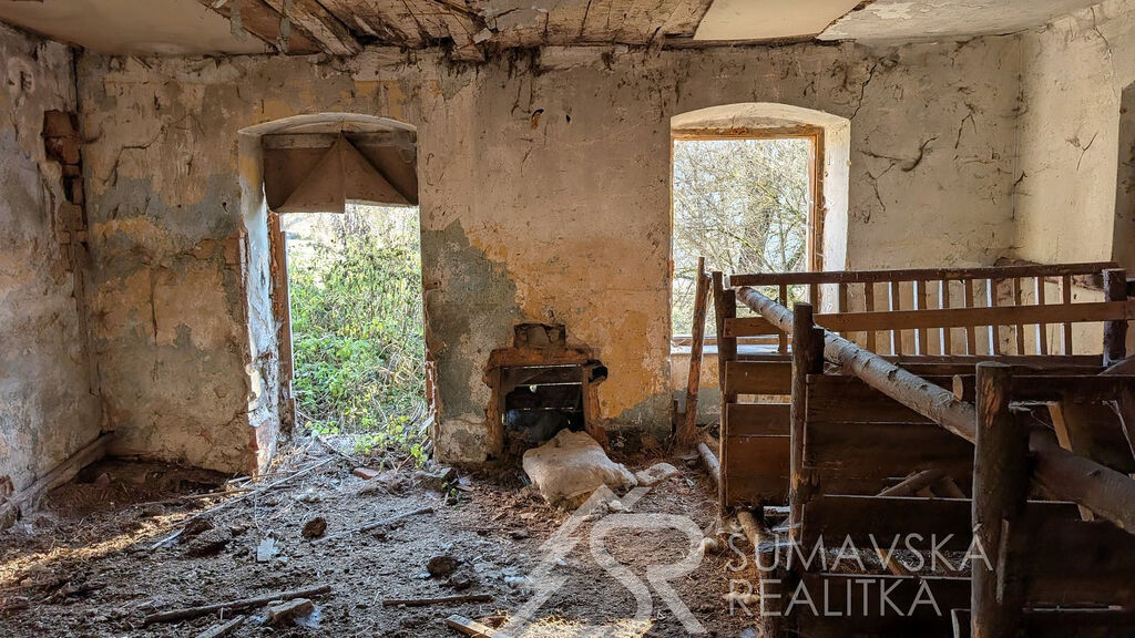 Popis: jedná se o bývalou kovárnu ležící přímo u komunikace v obci Tuškov u Kašperských Hor. Na pozemku o velikosti 197 m² stojí podsklepený dům o půdorysných rozměrech 6,8 x 18 m. Zastavěná plocha stavbou je 113 m². Dům sice není v dobré kondici, ale stavebními úpravami lze z něho vytvořit něco smysluplného. Výhodou je celé podsklepení ze stabilního kamenného zdiva se zastropením do kleneb.