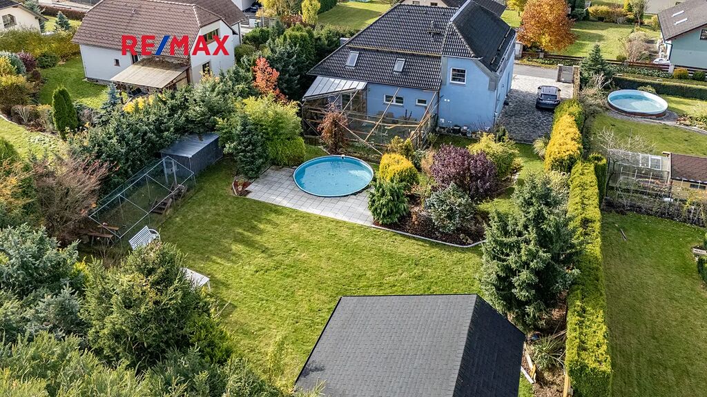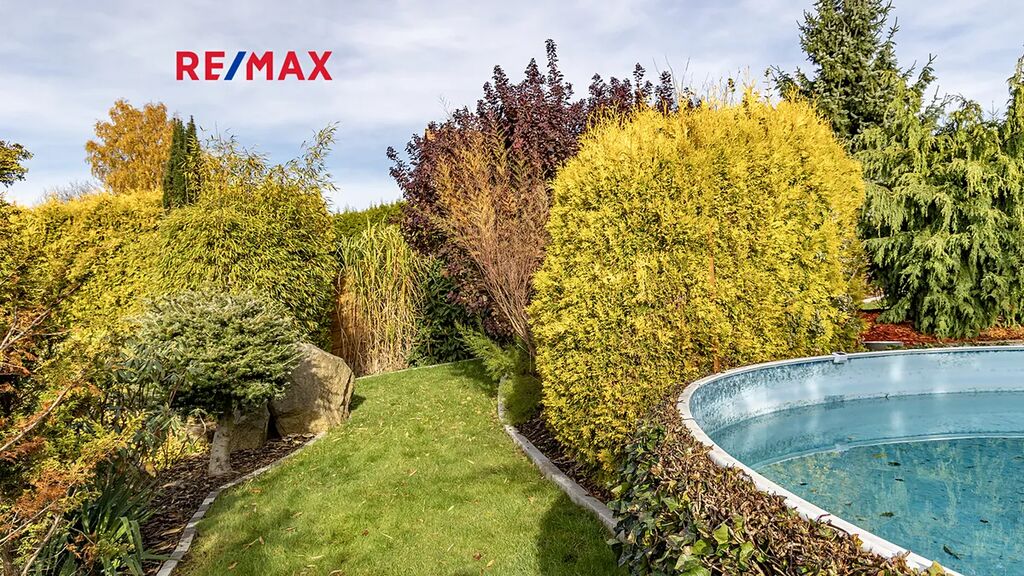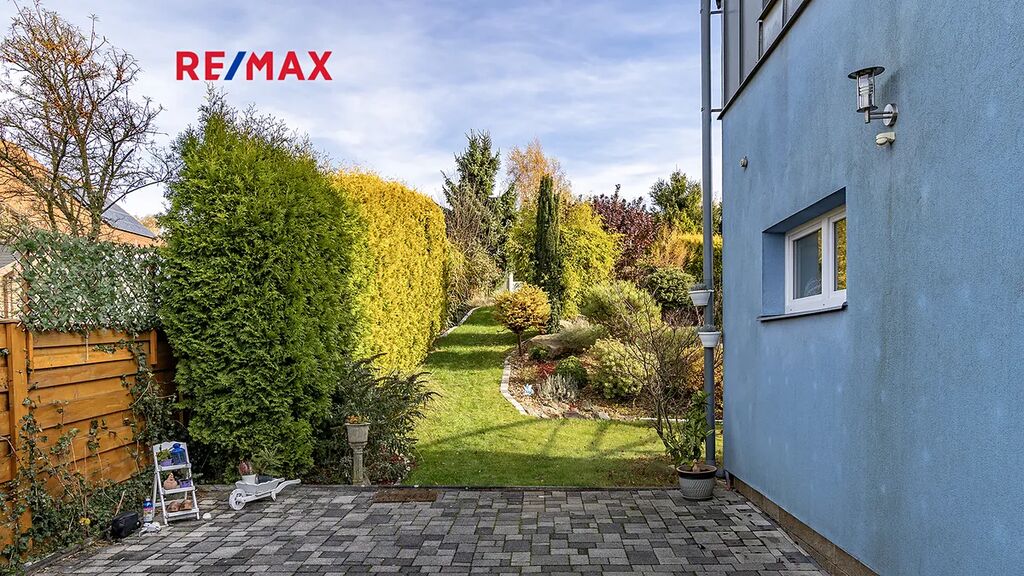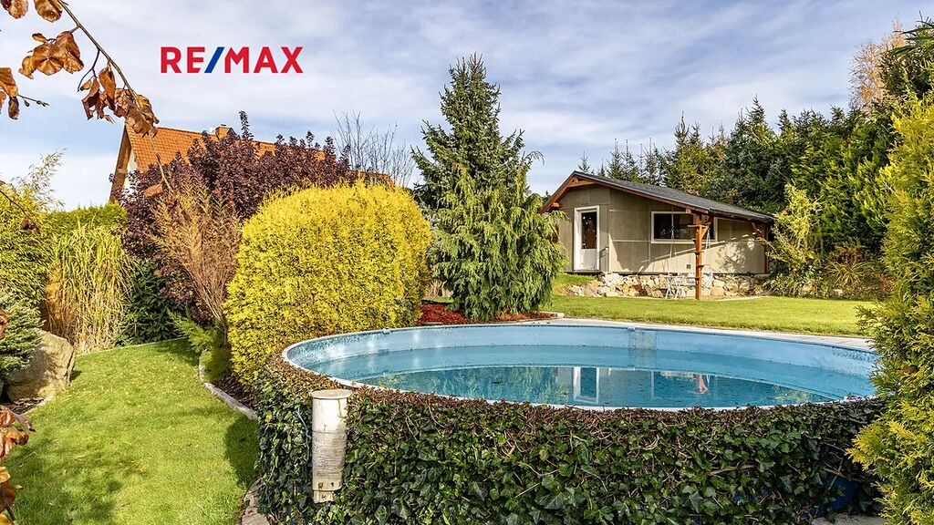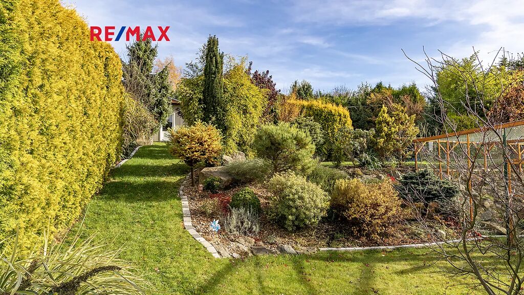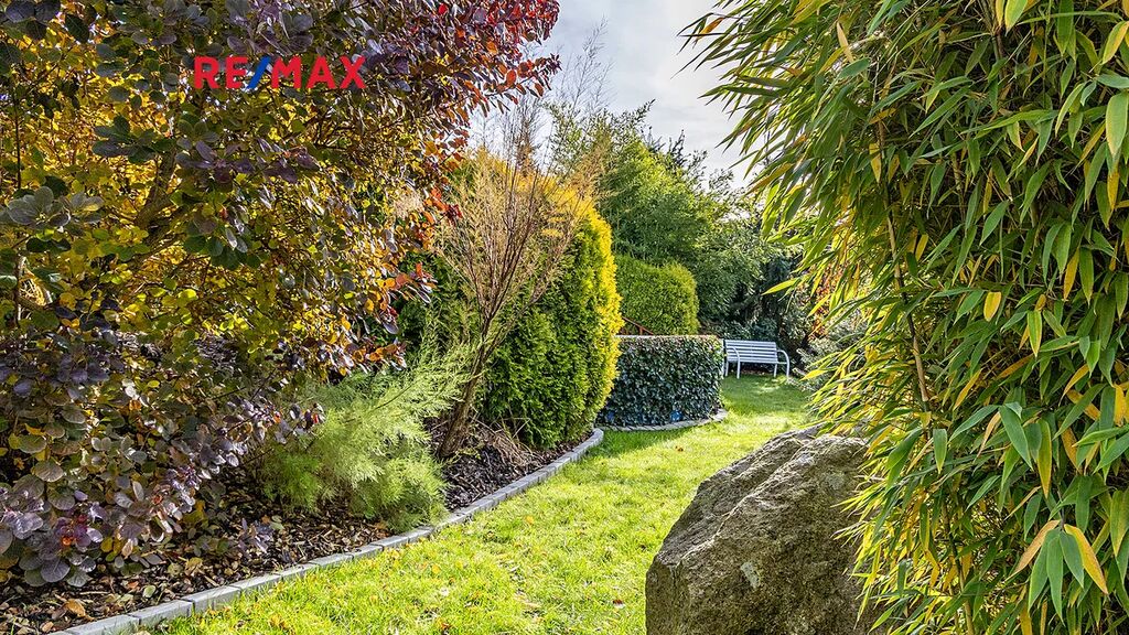 Dominantou nabídky je krásná, pečlivě udržovaná zahrada. Vzrostlé keře a kvalitní oplocení vytvářejí přirozenou clonu od sousedních pozemků, takže získáte skutečné soukromí pro rodinu i přátele. Zahrada je mírně svažitá, pečlivě a pravidelně udržovaná a nabízí několik „zón“: prostor pro ranní kávu na terase, trávník na dětské hry, zákoutí pro bylinkový či zeleninový záhon a klidné místo na večerní posezení. Díky promyšlené výsadbě je tu příjemně od jara do podzimu – a i v zimě zahrada působí upraveně.