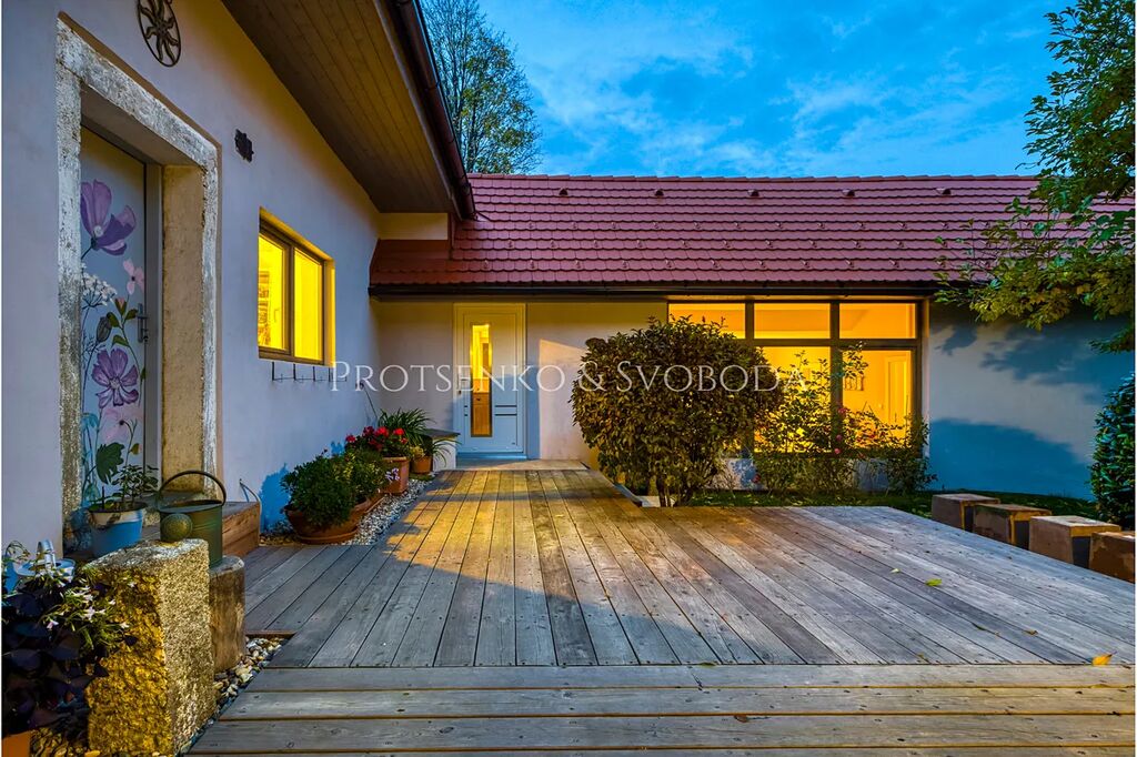 Jednou z největších přidaných hodnot této nemovitosti je rozlehlá a pečlivě založená zahrada, která vznikala více než půl století s citem a láskou místního umělce. Do prostoru vtiskl svůj osobitý rukopis a dodnes tu zůstaly jeho stopy – jemné detaily ukryté mezi stromy, v trávě i u jezírka a výsledkem je jedinečné dílo přírody i lidské tvořivosti.