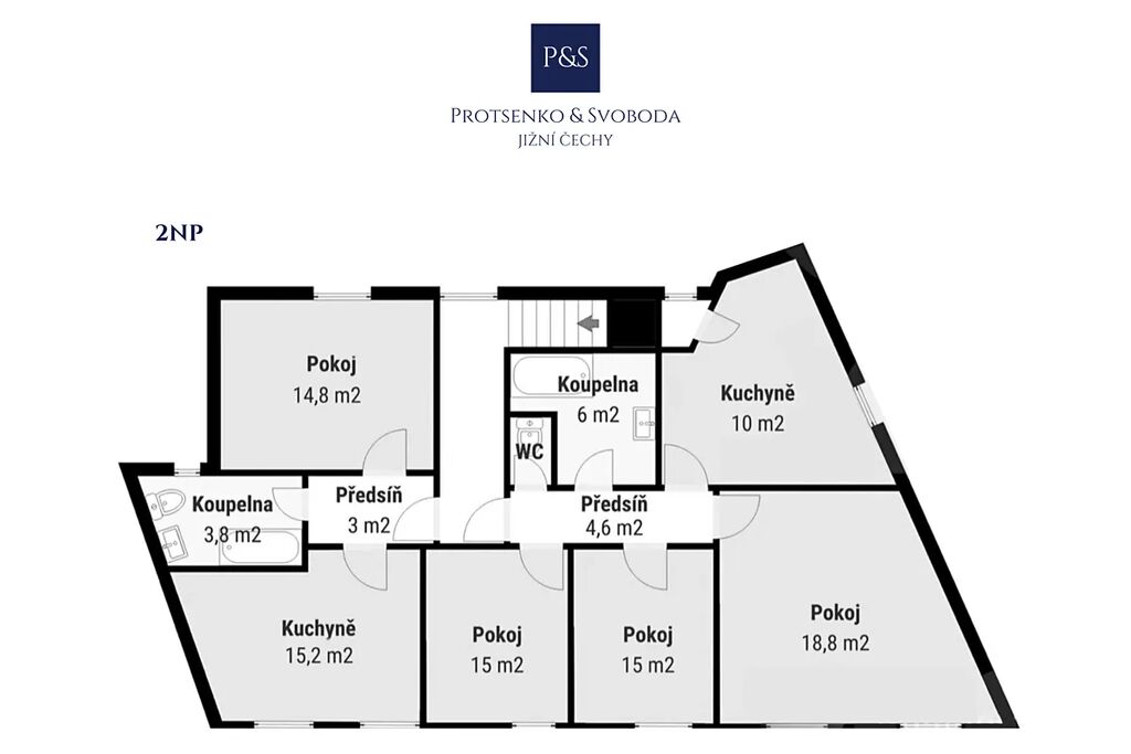 • možnost přestavby na čistě bytový dům (3–5 jednotek)