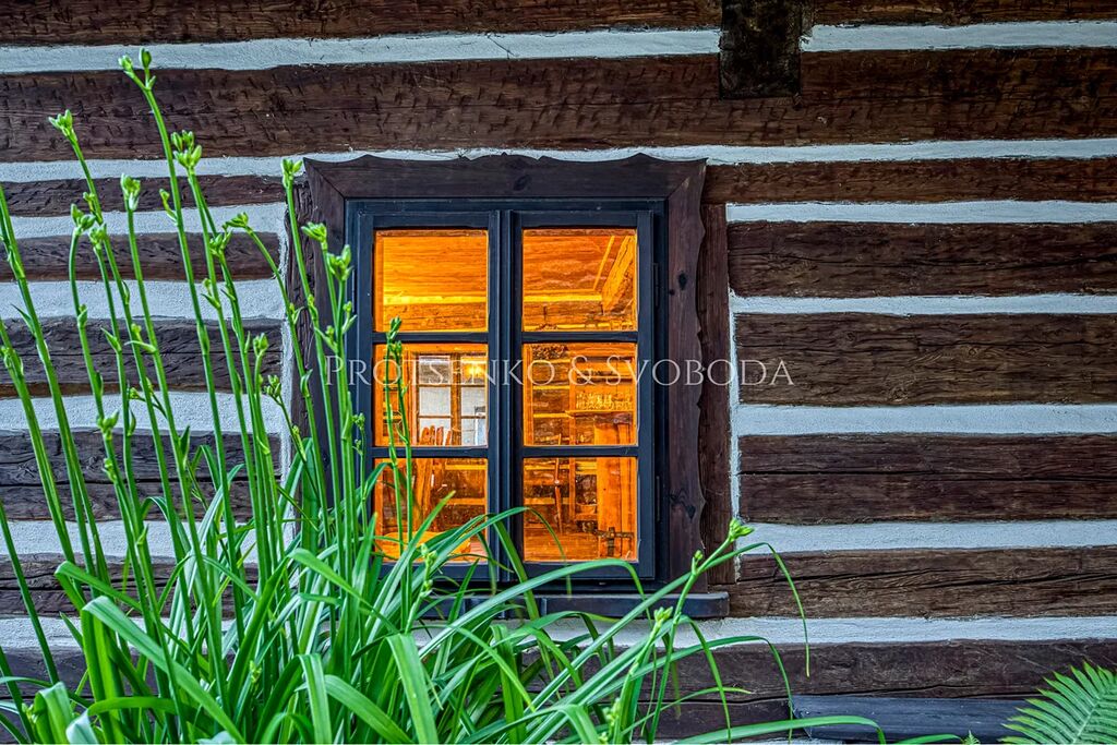 Dominantou domu je velká společenská místnost v tradičním roubeném stylu s kachlovými kamny a výčepem – srdce domova, kde se schází rodina i přátelé. K domu náleží pečlivě udržovaná zahrada s grilem, krbem a krytým venkovním posezením. Děti potěší trampolína, pískoviště i bazén, dospělí zase naleznou klid v šumu stromů a vůni lesa.