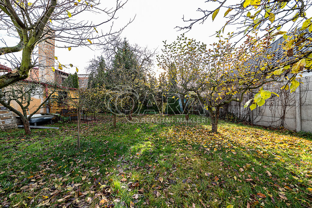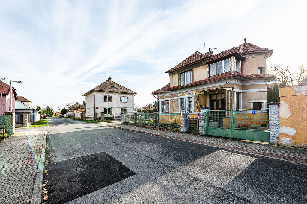 Pozemek o velikosti 667 m² je rovinatý a velmi dobře využitelný. Kromě hlavní budovy zde najdete také přístavbu garáže, kůlnu a zahradní altán – všechny stavby jsou vhodné k renovaci a nabízejí další možnosti využití. Samotný dům má dvě nadzemní podlaží a je částečně podsklepený.