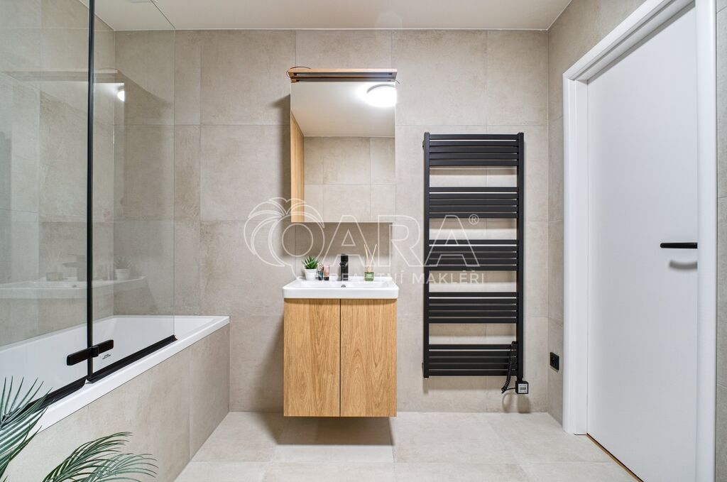 Moderní a prostorná koupelna, kam pohodlně umístíte pračku i sušičku