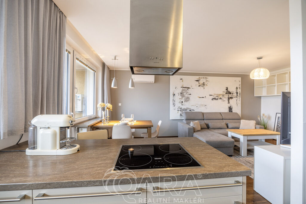 Tento stylový, kompletně vybavený byt je vhodný pro pár, rodinu i náročnější jednotlivce, kteří ocení tři neprůchozí pokoje, kvalitní vybavení, klid i rychlé spojení do centra.
