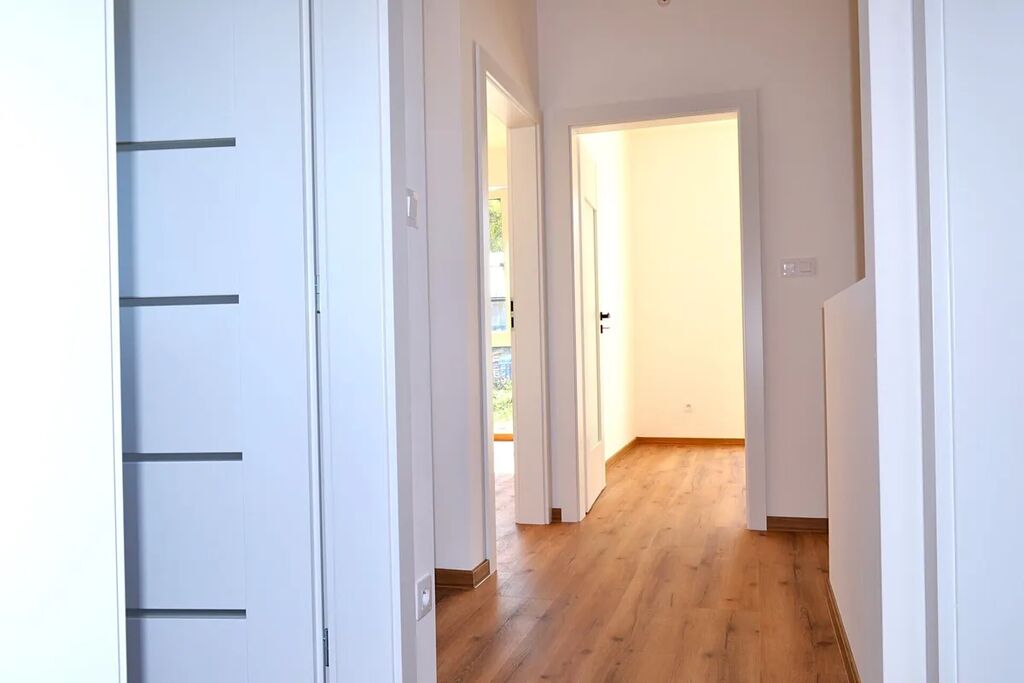 Nabízíme exkluzivně k prodeji moderní luxusní novostavbu z roku 2024, která je rozdělena do 2 identických částí (může být prodána jako celek nebo každá část „dům“ zvlášť). Moderní zděná novostavba se pyšní nejen svoji zajímavou logistickou polohou, ale zejména svou praktickou dispozicí při využití nejmodernější technologií a stavebních prvků zajišťující velmi nízkou energetickou náročnost. Dvoupodlažní moderní novostavba o celkové užitné ploše 117 m2 disponuje v 1. NP prostornou vstupní chodbou, pokojem pro hosty či pracovnou, technickou místností se sprchou a WC, obývacím pokojem s kuchyňským koutem orientovaným na jižní stranu, což zajišťuje dostatek světla (tepla) po celý den. Z obývacího pokoje s kuchyňským koutem jednoduše lze vstoupit na prosluněnou terasu domu, která je součástí ideálně veliké zahrady. Příjemný teplotní komfort uvnitř nemovitosti v letních měsících, zajistí venkovní instalované elektronicky ovládané žaluzie a v chladnějším období zase podlahové vytápění či topení v krbových kamnech. V druhém nadzemním podlaží jsou situovány 3 prostorné ložnice (jedna z nich disponuje šatnou), WC, a prostorná koupelna s vanou. Celý komfort a užitnou hodnotu domu dokreslují kvalitní vinylové podlahy přírodních barev, moderní stavební výplně a kvalitně odvedené řemeslnické práce. Přijďte se sami přesvědčit a získat podrobnější informace o této jedinečné novostavbě. Investor nabízí i možnost směny za jinou nemovitost.