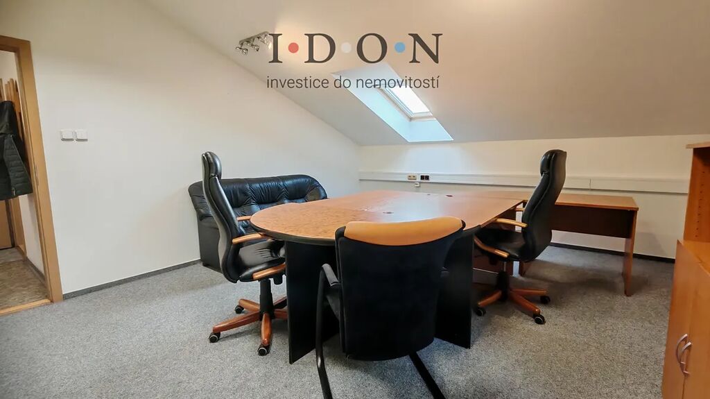 Klimatizovaná kancelář je světlá, udržovaná vybavená stoly, židlemi a dalším nábytkem. Na patře je k dispozici vybavená kuchyňka a WC.