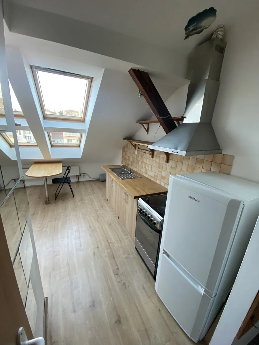 Byt je po renovaci, nově vymalovaný, má novou kuchyňskou desku a novou podlahu v kuchyni. Kuchyňská část s jídelním koutem jsou otevřené do obývací části s velkou vestavěnou dvojpostelí na patro. Byt má střešní okna s krásným výhledem.