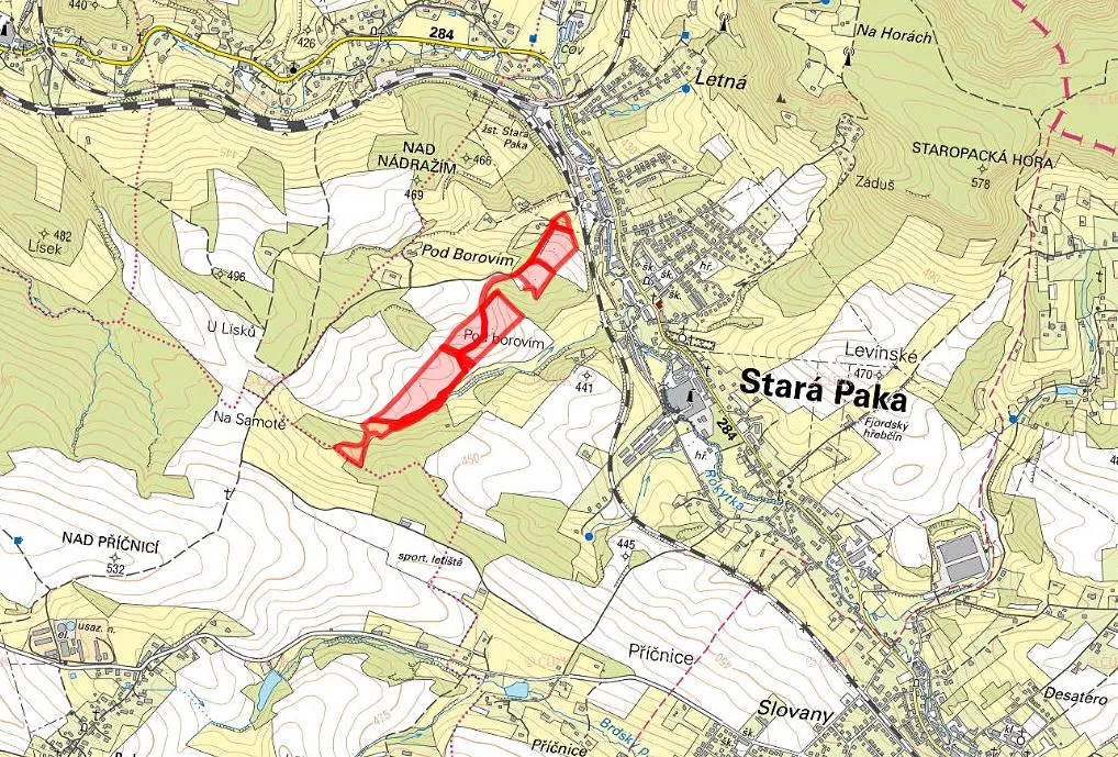 Předmětem prodeje jsou pozemky zapsané na LV 101 v KÚ Stará Paka. Jedná se o parcely č.: 572/1, 575, 577/12, 579/1, 584, 589, 590/1, 590/3, 590/5, 1415/1, 580/1, 580/2, 581, 583/1, 585/1, 586/2 o celkové výměře 113 448 m², z toho:
