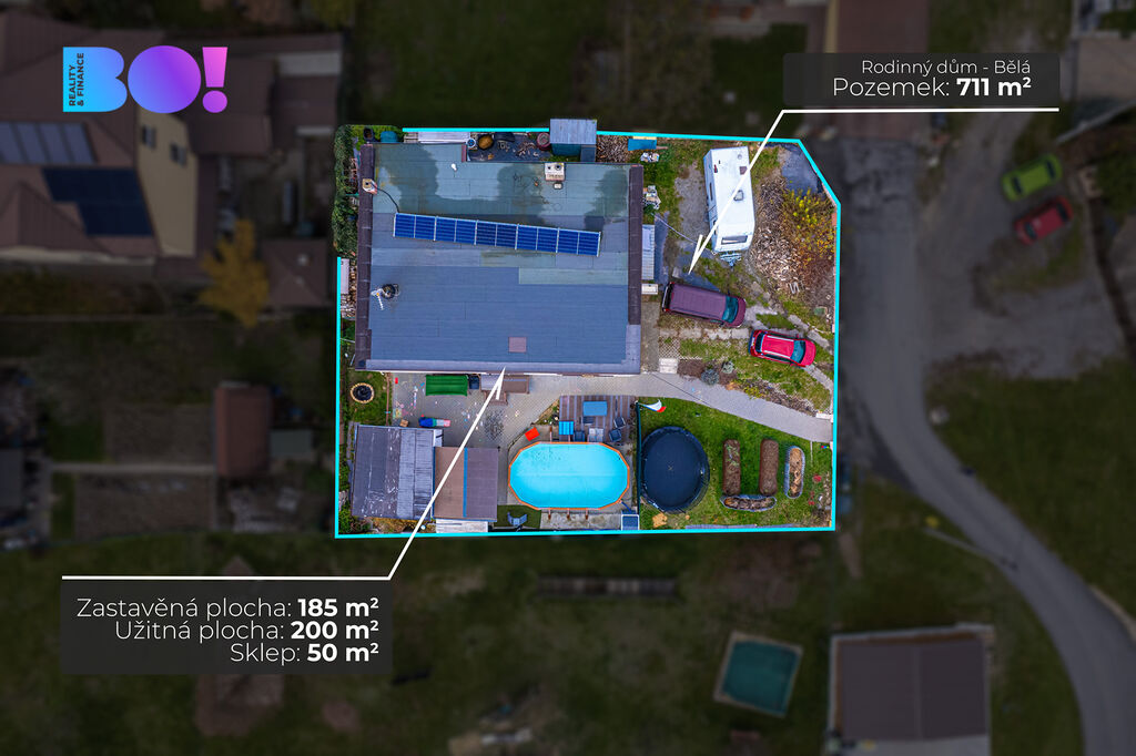 Součástí přízemí je garáž, stání pro 2 auta je umožněno také přímo před domem. Zahrada o rozloze přes 330 m² představuje ideální místo pro relaxaci a rodinné aktivity. Na pozemku o celkové ploše 711m2 najdete taky zastřešené venkovní posezení s venkovní kuchyňkou. Taktéž je možnost odkupu stávajícího venkovního bazénu.
