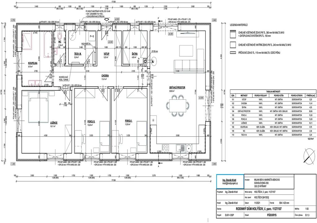 - čistá užitná plocha obytných místností je 122,2 m2