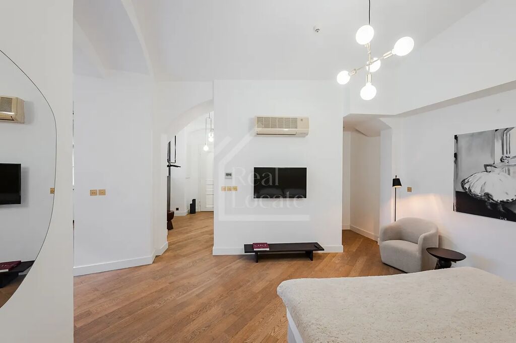 Bytová jednotka je kompletně zařízena stylovým nábytkem a dokončena ve vysokých standardech (dřevěná podlaha, mosazná kuchyň, krásné lustry, klimatizace atd). K bytu dále náleží sklep o velikosti 2m2.