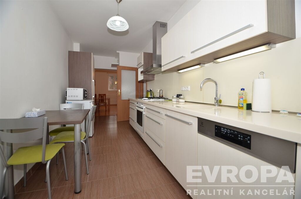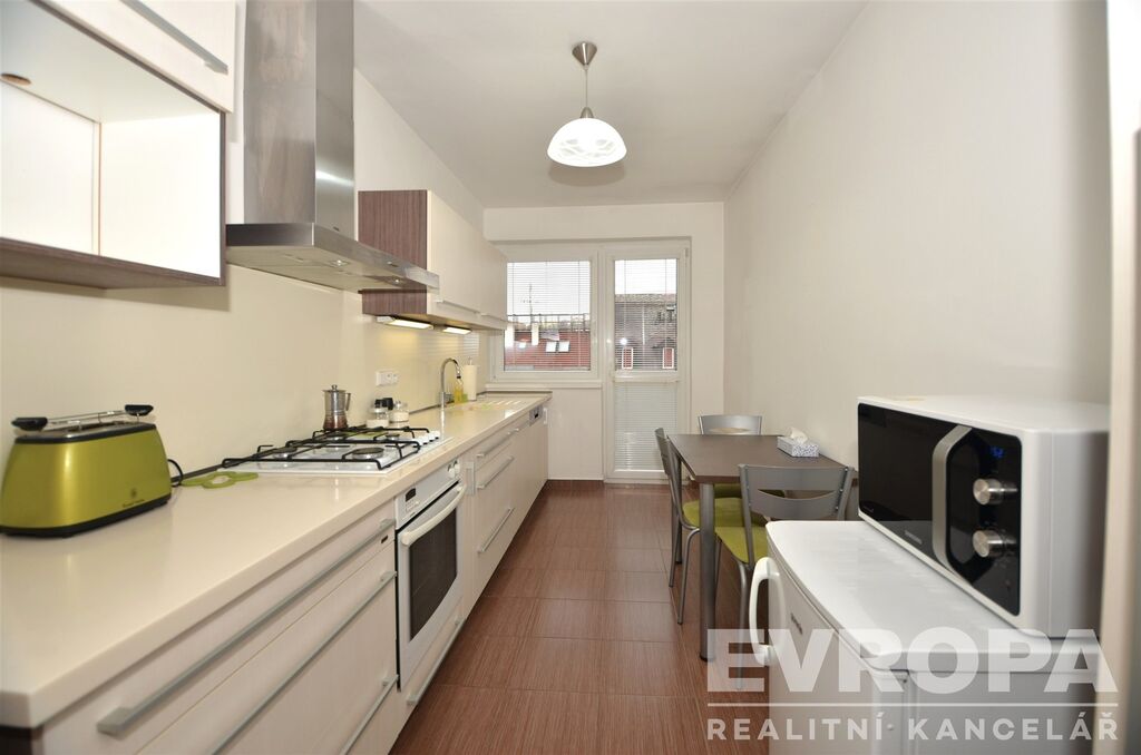 Byt se skládá z předsíně, dále moderní kuchyň vybavená kuchyňskou linkou se spotřebiči (el. trouba, plynová varná deska, myčka nádobí, digestoř), z kuchyně je výstup na příjemný balkon o velikosti 5 m², orientovaný do klidného vnitrobloku. Byt má dále velký obývací pokoj a dvě ložnice, je částečně vybavený, včetně velké vestavěné skříně v ložnici. Lokalita poskytuje veškerou občanskou vybavenost v pěší dostupnosti – obchody, školy, MHD, zdravotnická zařízení i kavárny, obchody přímo před domem. Parkování je možné v okolí domu, na rezidenční kartu, možnost přihlášení k trvalému bydlišti. Byt je ideální pro rodinu nebo pár hledající moderní bydlení s dostatkem prostoru. Přímý majitel hledá solidní nájemce, za to nabízí také velmi korektní jednání a dlouhodobý pronájem. K nastěhování dle dohody.