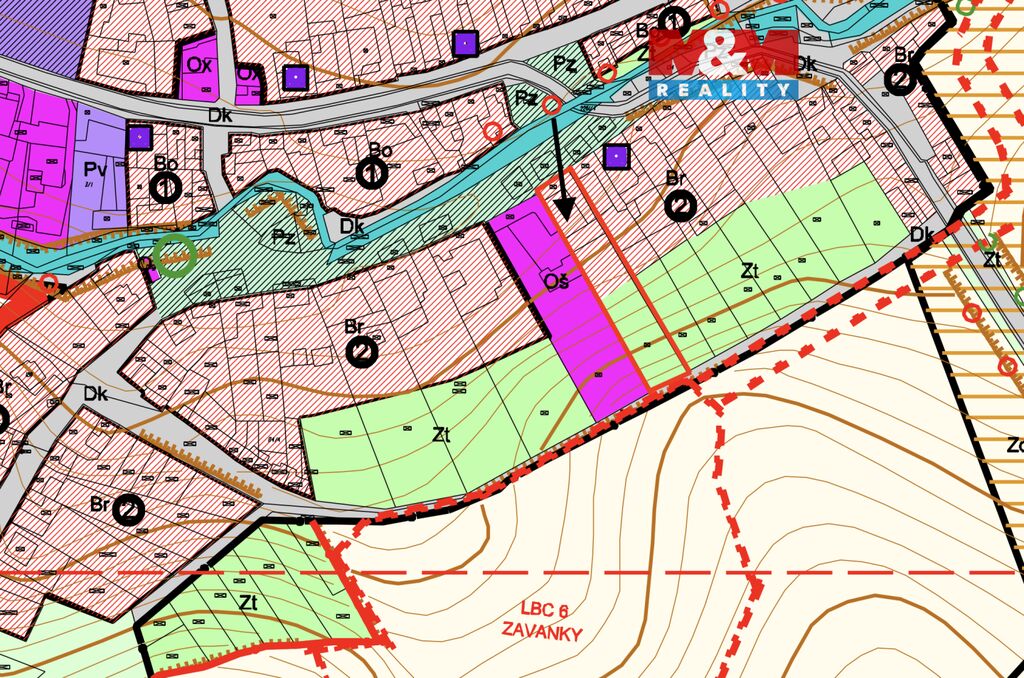 Nabízíme prodej stavebního pozemku s torzem řadového rodinného domu k demolici, pro výstavbu nového rodinného domu. Uliční šíře pozemku je 17,5 m. Stavby v této zóně musí svým charakterem (pojednáním hmot, barevností) odpovídat venkovskému obrazu sídla a mohou mít maximálně dvě nadzemní podlaží. Maximální zastavěnost je 35% pozemku. Aktuální zastavěná plocha a nádvoří je o rozloze 597 m2, k čemuž náleží 1569 m2 zahrady, celková plocha nabízených pozemků je 2166 m2. Parcela je v územním plánu označena přibližně z poloviny jako zastavitelné území a z druhé poloviny jako zeleň. Pozemek bude vyklizen a srovnán, demolice je však na novém majiteli. Více informací v RK.