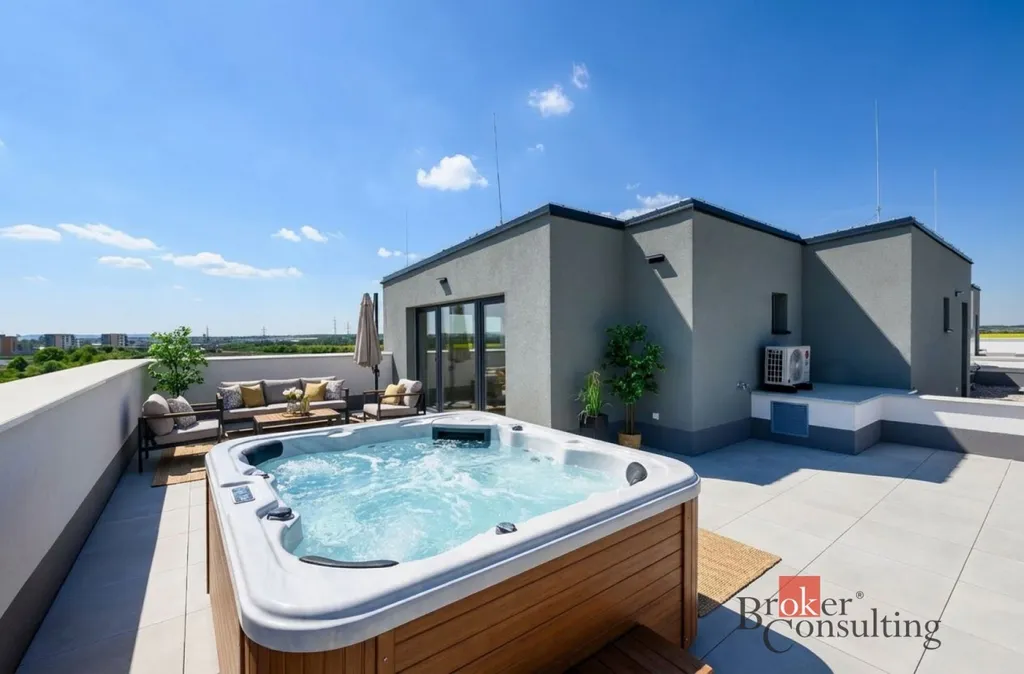 Vzhledem ke dvou podlažím, velkým terasám a luxusnímu vybavení bytu se jedná o nemovitost určenou zejména tomu, kdo hledá ojedinělý způsob bydlení, který běžné byty nejsou schopny nabídnout.