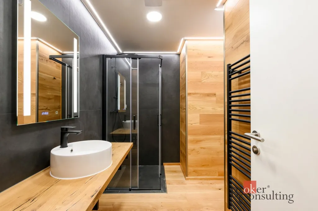 Na prodej zcela nový luxusní dvoupodlažní byt o dispozici 3+kk s dvěma terasami o celkové výměře 197 m2, nacházející se v 6. a 7. NP novostavby s atriem v Plzni na Skvrňanech. Byt byl před několika týdny dokončen, má kvalitní dubovou podlahu, dubové obklady na stěnách, klimatizaci a luxusně zařízené dvě koupelny. Chybí jen kuchyňská linka a svítidla, které si vybere již nový vlastník. Je součástí moderního rezidenčního projektu Nové Skvrňany, který klade důraz na kvalitní materiály, funkční dispozice a pohodlné městské bydlení. Součástí bytu jsou dvě terasy s výhledem na Plzeň z nichž na jedné je již instalována vířivka, dvě ložnice s prostory pro šatnu, dvě koupelny se sprchovým koutem i vanou a oddělenou toaletou. K bytu dále náleží prostorná sklepní kóje a k bytu je možné přikoupit i dvě parkovací stání v suterénu domu. Vytápění domu i ohřev vody je řešeno dálkově.