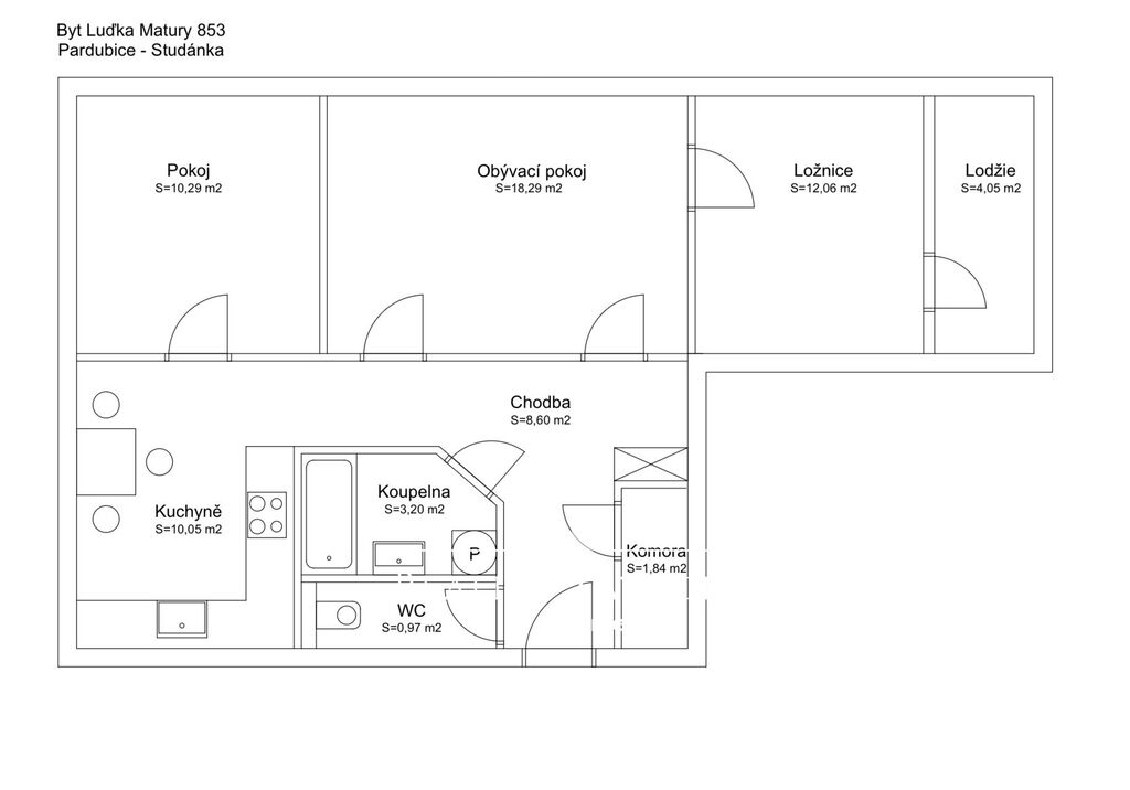 Byt o užitné ploše 74 m² se nachází v 2NP bytového domu s výtahem v žádané lokalitě Pardubice - Studánka, na adrese Luďka Matury 853.