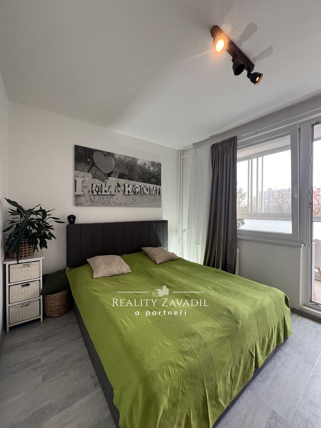Z kuchyně je vstup do dětského pokoje, který je situovaný na SZ. Z chodby se dostanete do obývacího pokoje vybaveného rohovou sedací soupravou a stolkem pod TV. Obývací pokoj je průchozí do ložnice, ve které se nachází vestavěná šatní skříň a manželská postel. Velkou předností tohoto bytu je prosklená lodžie 4,5m2 s výhledem do zeleně situovaná na JV.